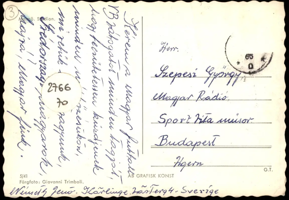 Postcard Malmö Stadion Fussball Football Soccer Stadium 1965