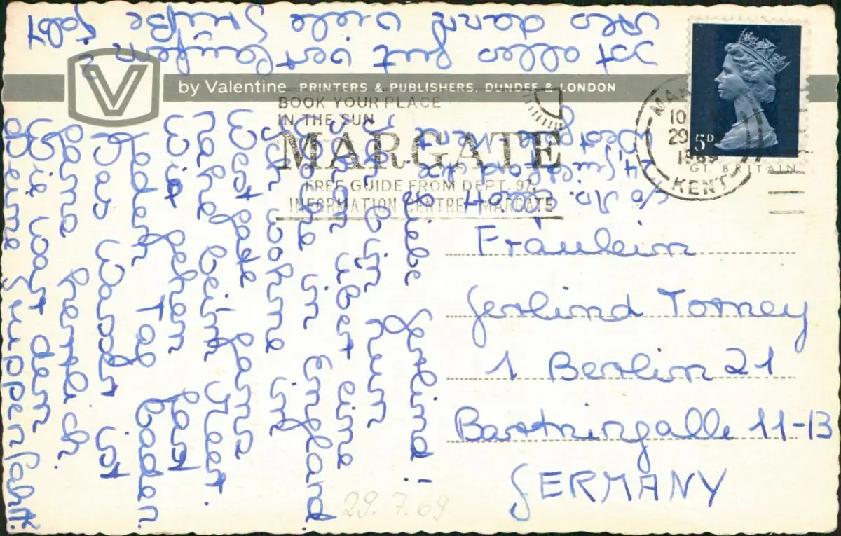 Postcard Margate (Kent) Panorama The Clock Tower and Beach 1969