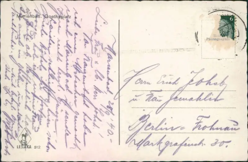 Postcard Marienbad Mariánské Lázně Goetheplatz 1932