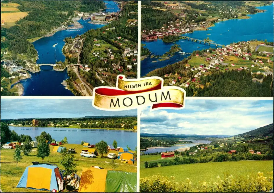 Postcard Modum Mehrbild-AK 4 Photos ua. Camping, Luftaufnahmen 1982