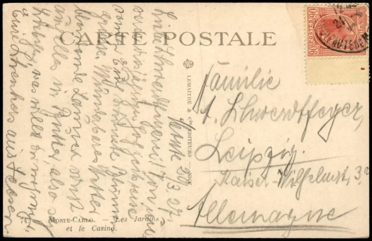 Postcard Monaco Casino 1927 gel. Briefmarke Seitenrand