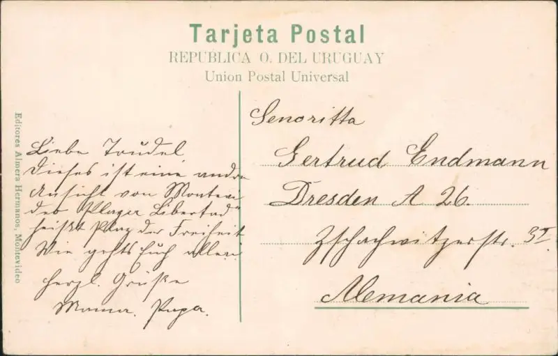 Postcard Montevideo Uruguay Plaza Libertad 1913