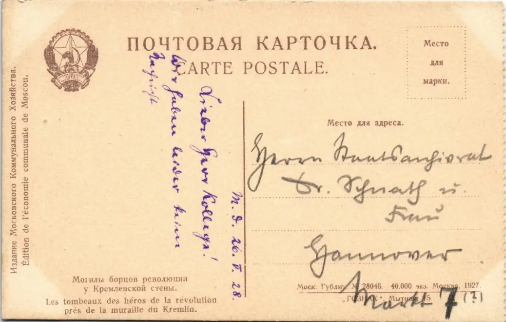 Postcard Moskau Москва́ Partie am Kreml 1927