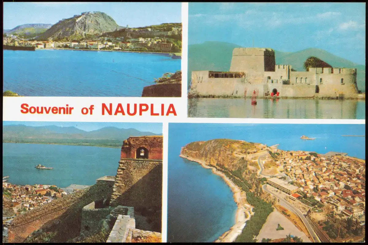 Postcard Nafplio Ναύπλιο 4 Bild: Stadt u. Luftbild 1980