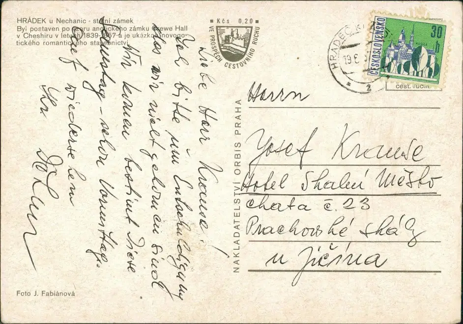 Postcard Nechanitz Nechanice Schloß Hradek 1968