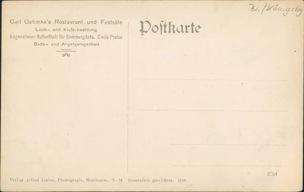 Postcard Neudamm (Neumark) Dębno Restaurant Am Waldessaum 1910