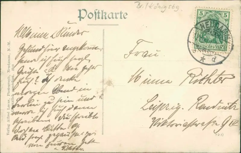 Postcard Neudamm (Neumark) Dębno Richtstraße Myśliborski (Kreis Soldin) 1911