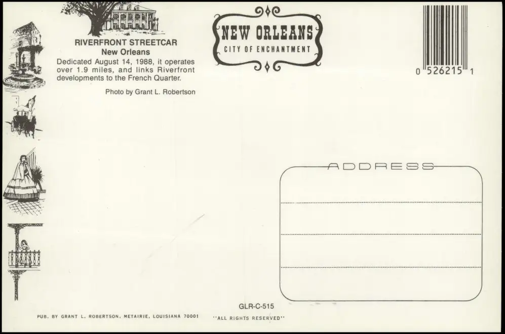 Postcard New Orleans RIVERFRONT STREETCAR (Tram) 1990