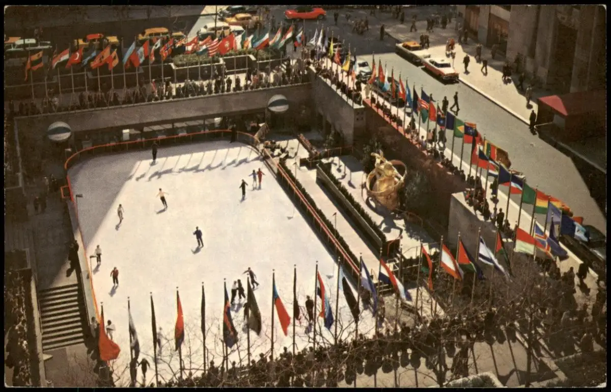 Postcard New York City ROCKEFELLER PLAZA SKATING RINK 1960