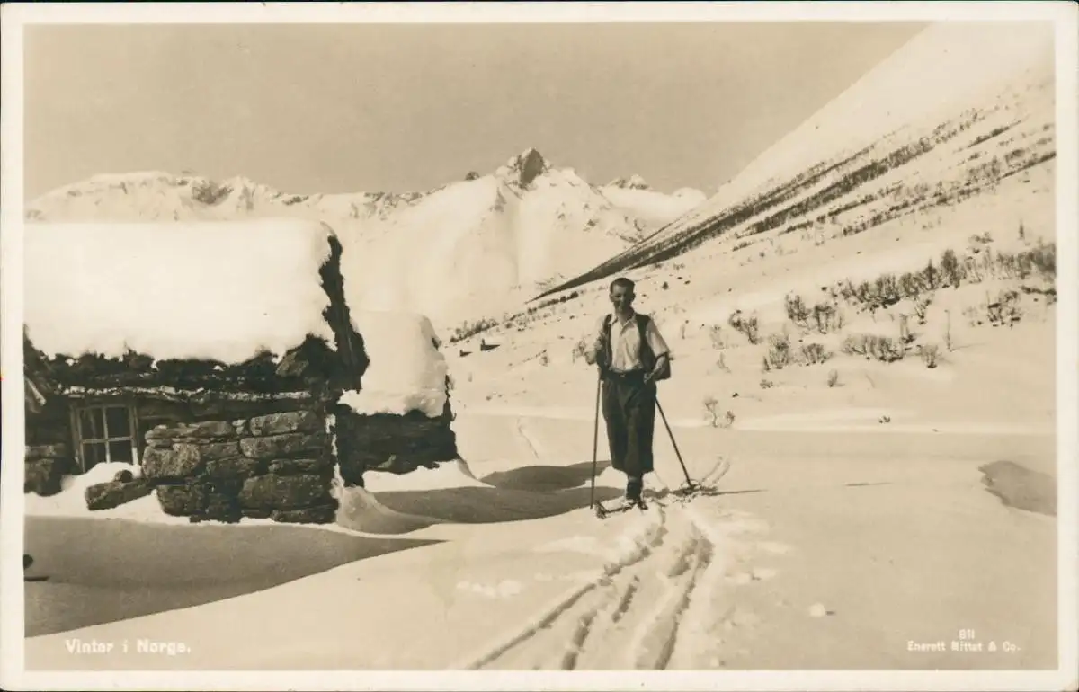 Postcard Norwegen Allgemein Winter Skiläufer Hütte Norge 1942