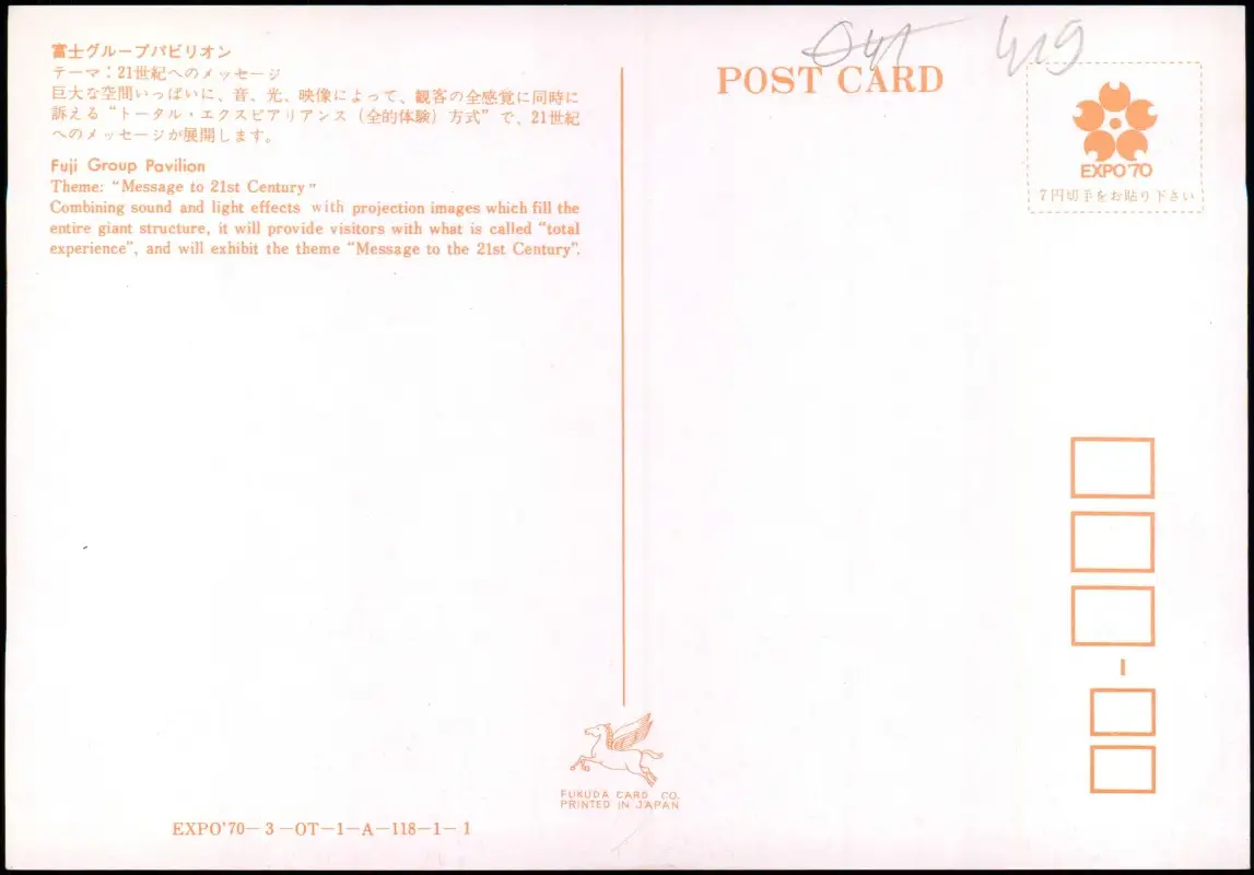 Postcard Osaka Ōsaka-shi (大阪市) Fuji Group Pavilion EXPO 1970