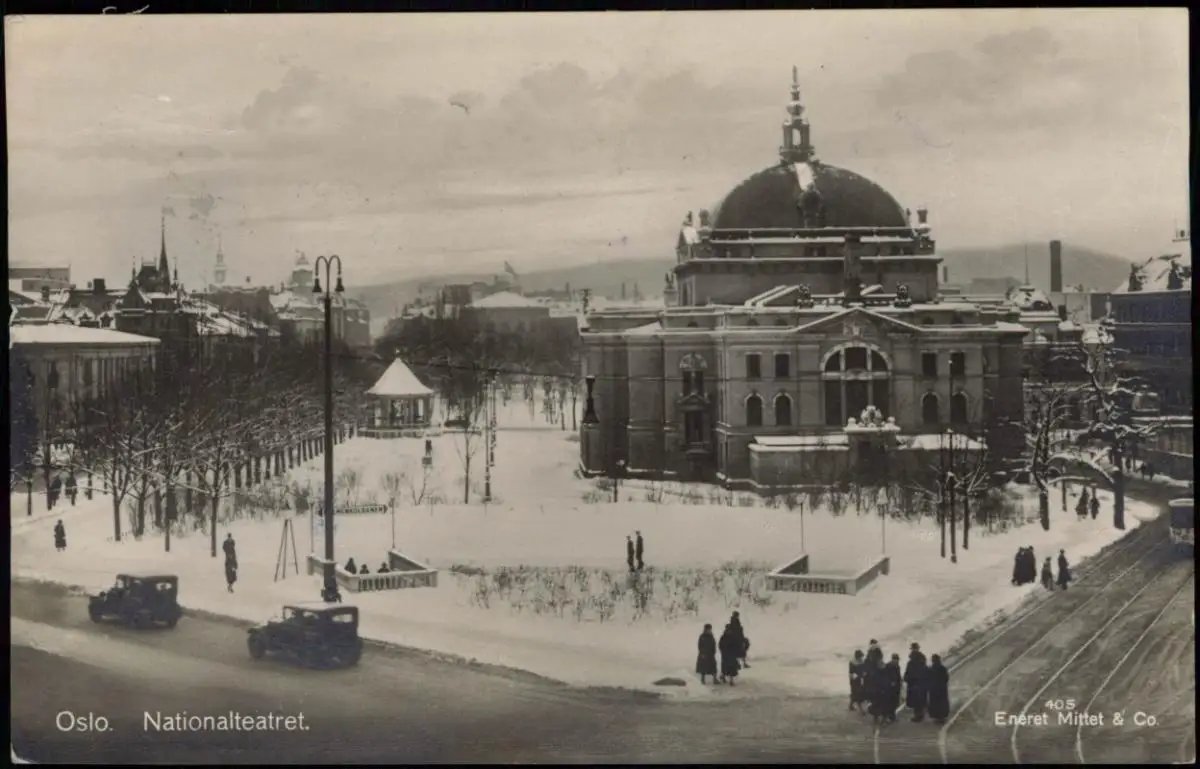 Postcard Oslo Kristiania Nationalteatret - Straßenpartie im Winter 1917
