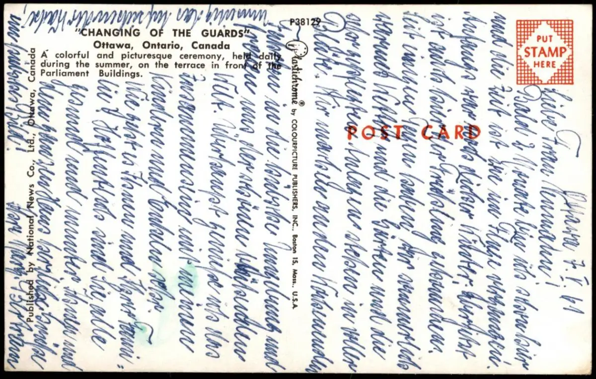Postcard Ottawa Changing of the guards 1961