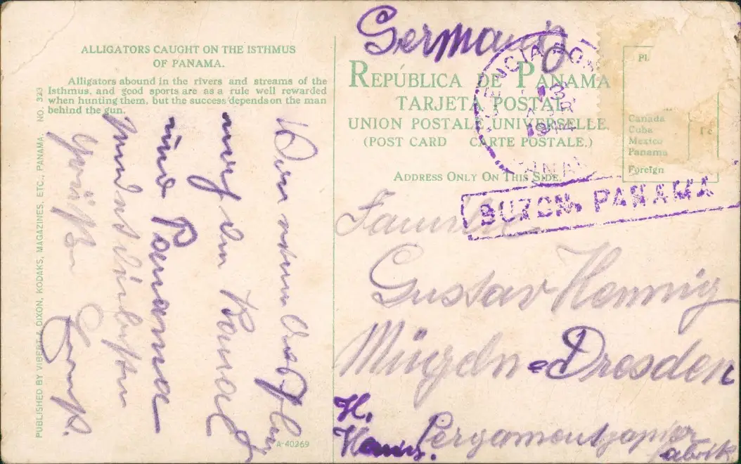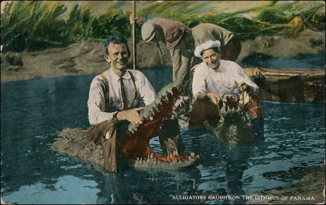 Postcard Panama-Stadt Panamá ALLIGATORS CAUGHT ON THE ISTHMUS 1914