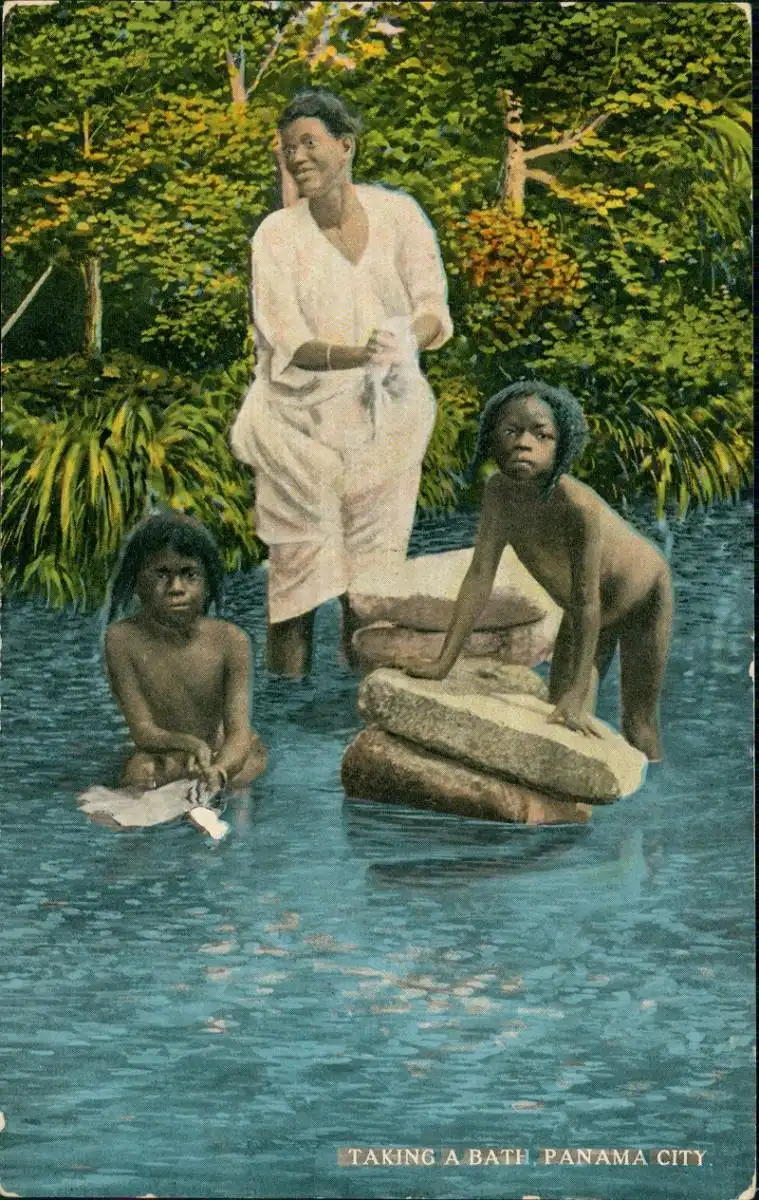 Postcard Panama-Stadt Panamá City: Taking a bath 1906