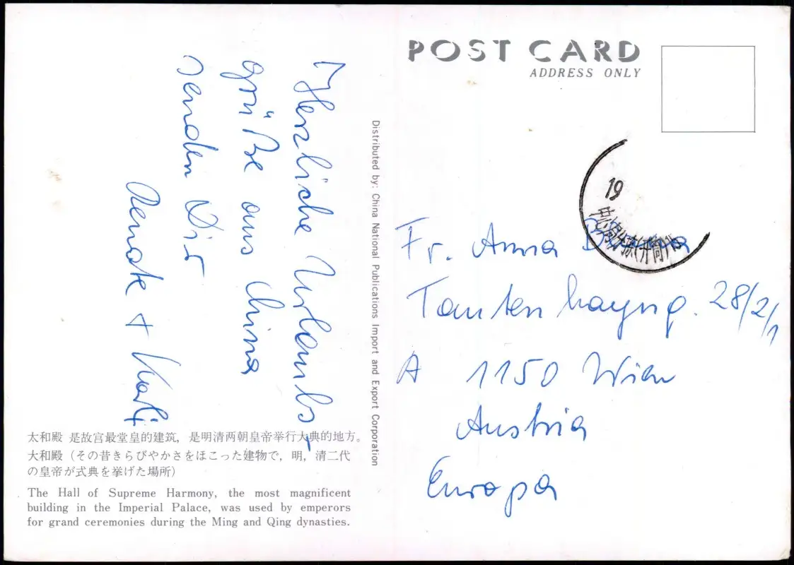 Postcard Peking Běijīng (北京) The Hall of Supreme Harmony 1998