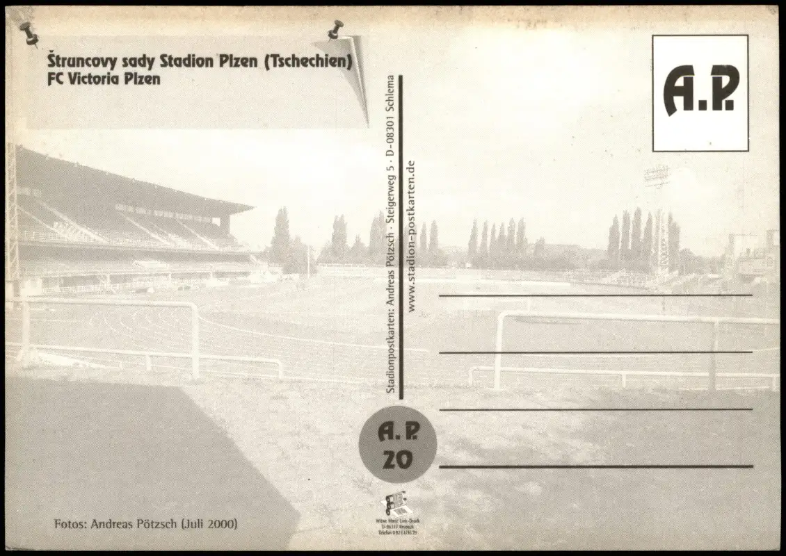 Postcard Pilsen Plzeň Štruncovy sady Stadion Plzen 2000