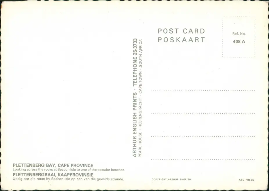 Postcard Plettenberg Bay Stadt und Strand 1980