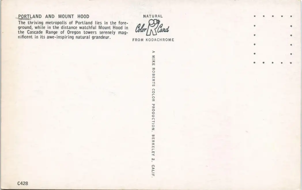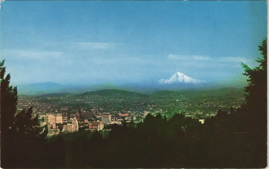 Postcard Portland PORTLAND AND MOUNT HOOD Panorama USA Oregon 1970