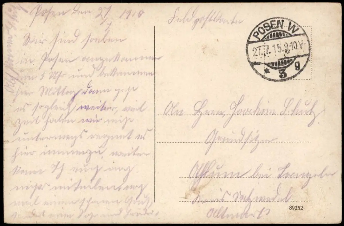 gel. Feldpoststempel Posen