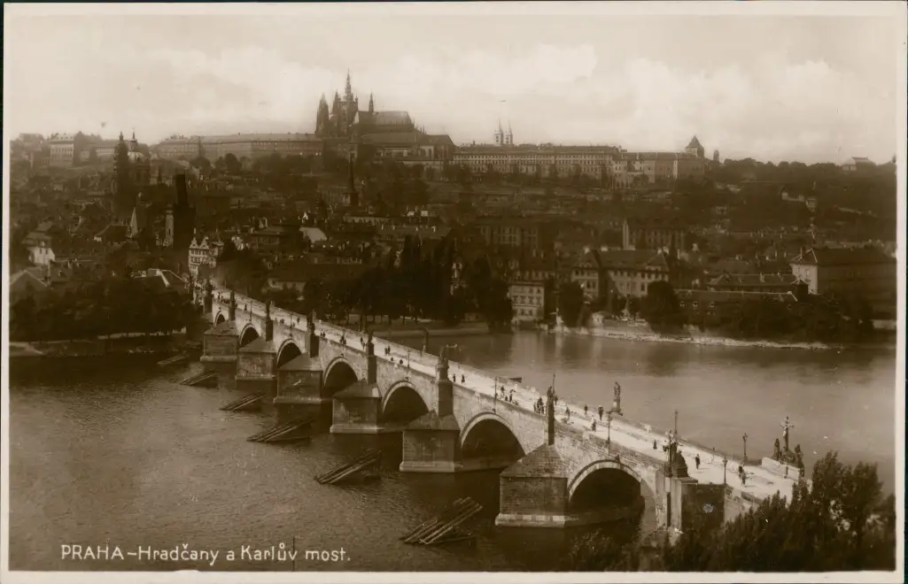 Postcard Prag Praha Hradčany a Karlův most. 1929