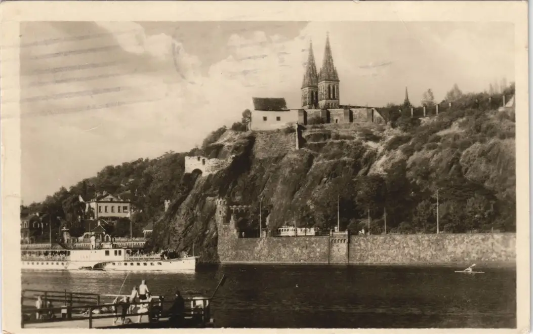 Postcard Prag Praha Panorama Teilansicht mit Fluss-Schiff 1956