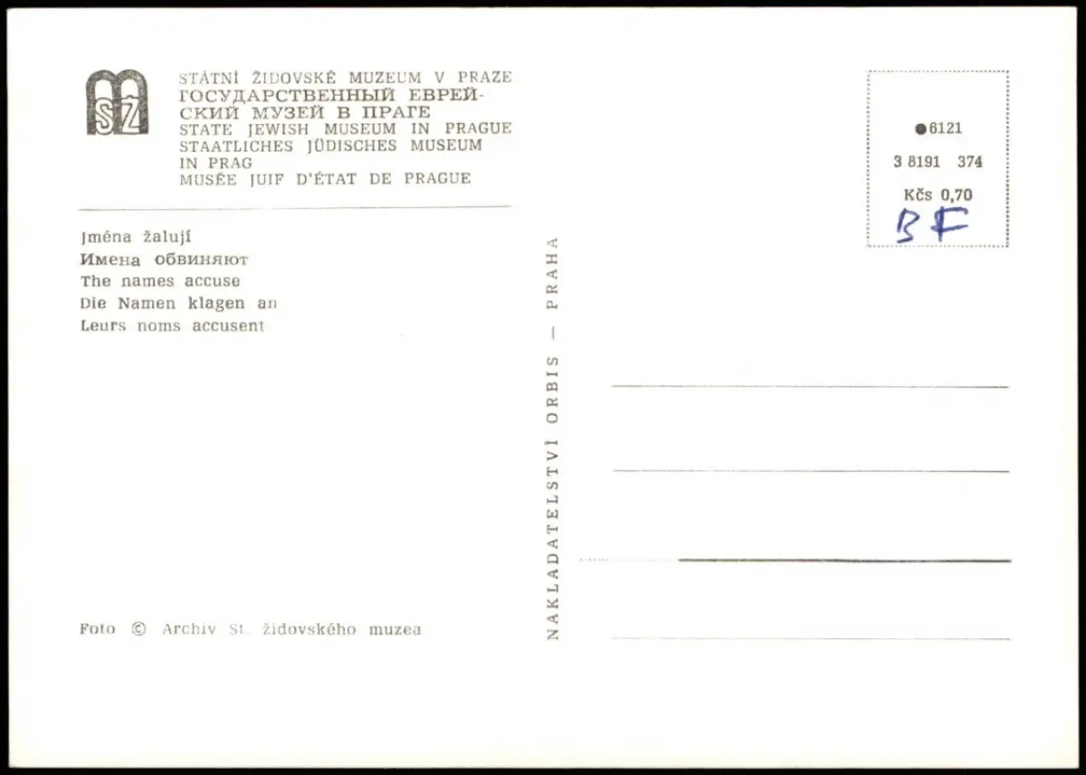 Postcard Prag Praha Synagoge - Die Namen klagen an 1975