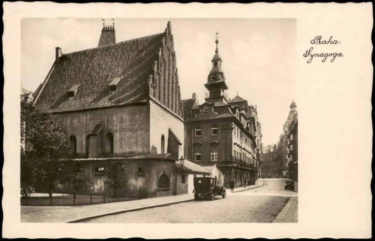Postcard Prag Praha Synagoge, Judaika - Straße Auto 1934