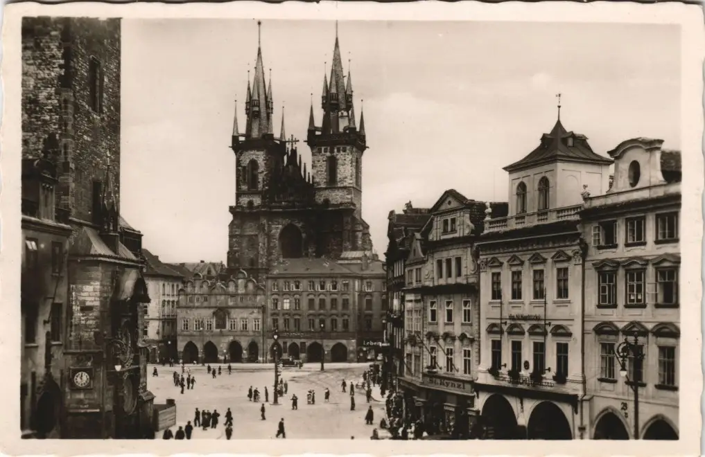 Postcard Prag Praha Týneký chrám. Teinkirche. 1937