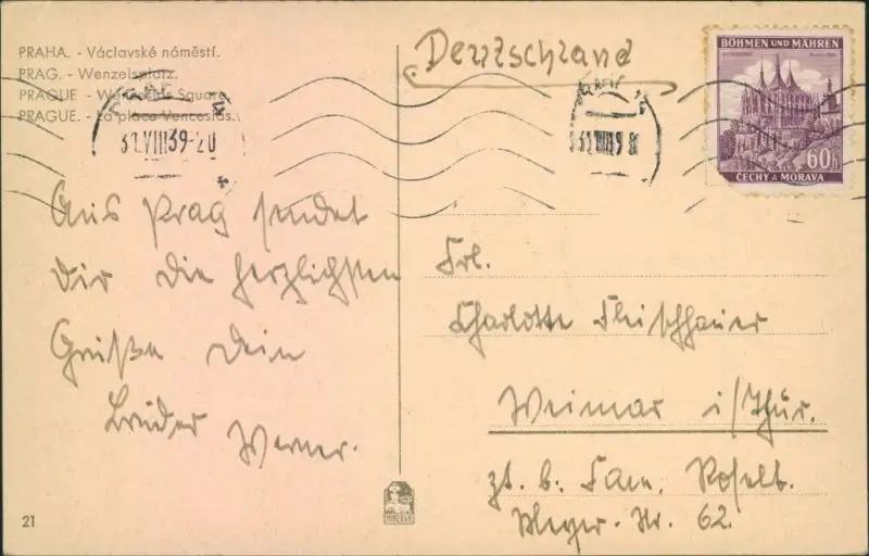 Postcard Prag Praha Wenzelplatz/Václavské náměstí 1939