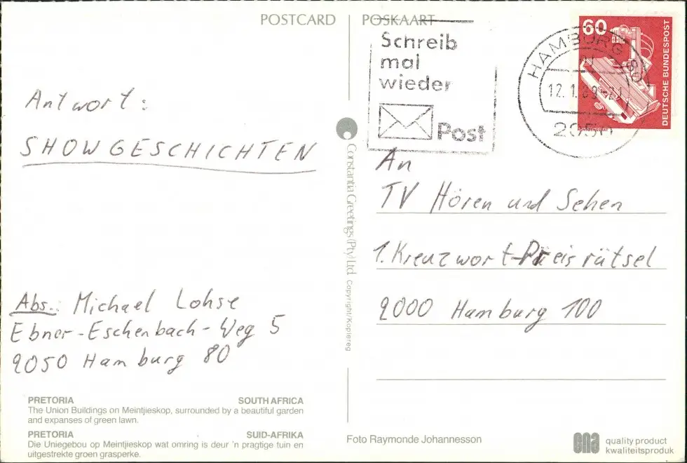 Postcard Pretoria Tshwane The Union Buildings on Meintjieskop 1989