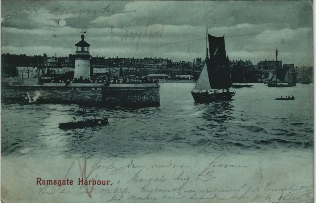 Postcard Ramsgate Hafen, Harbour - Mondscheinlitho 1901