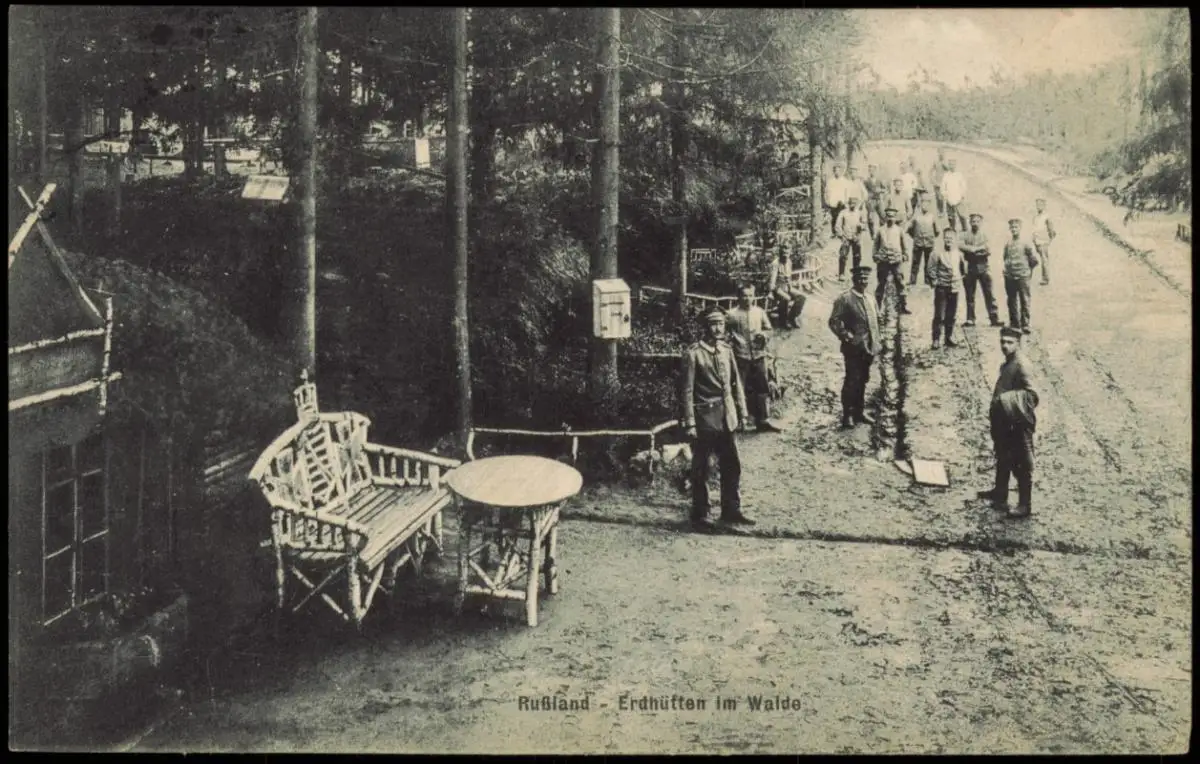 Postcard .Russland Rußland Россия Militär Erdhütten 1917 gel. Feldpoststempel