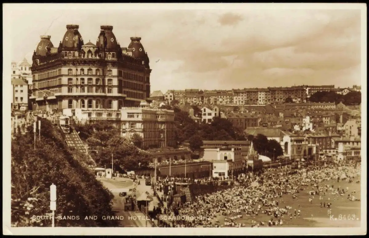 Postcard Scarborough South Sands and Grand Hotel 1956