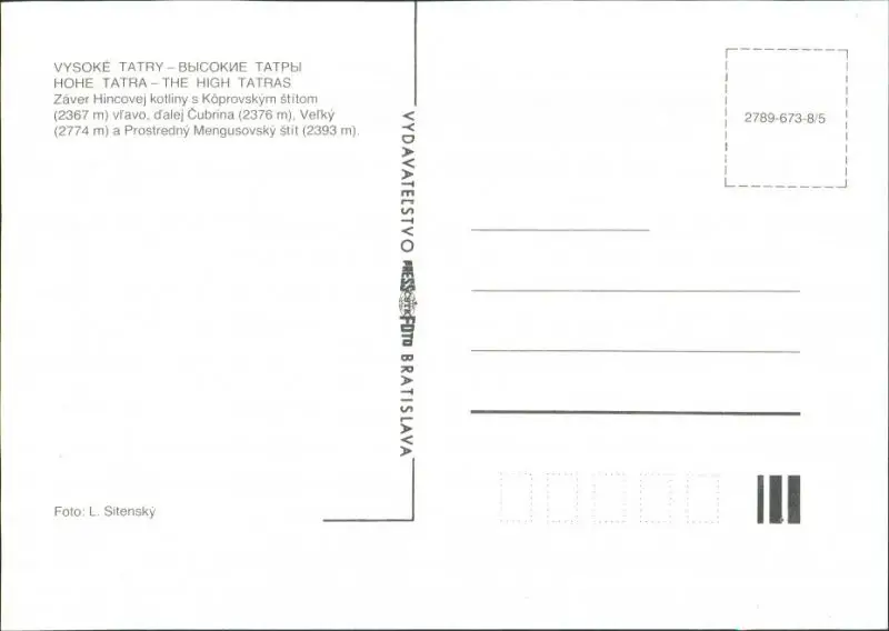 Postcard .Slowakei Záver Hincovej kotliny s kôprovským štítom 1985