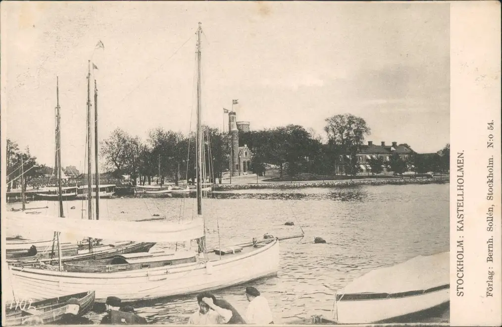 Postcard Stockholm KASTELLHOLMEN Panorama mit Segeljacht Hafen 1900
