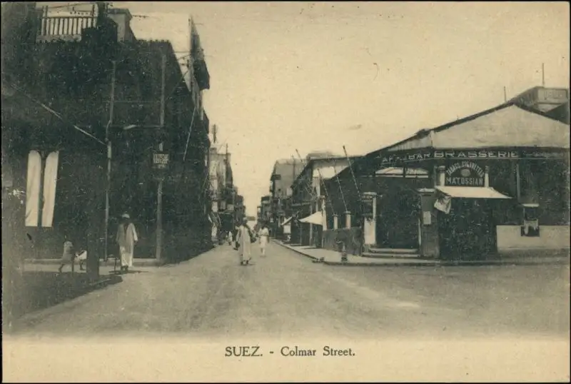 Postcard Suez السويس‎ as-Suways Colmar Street 1911