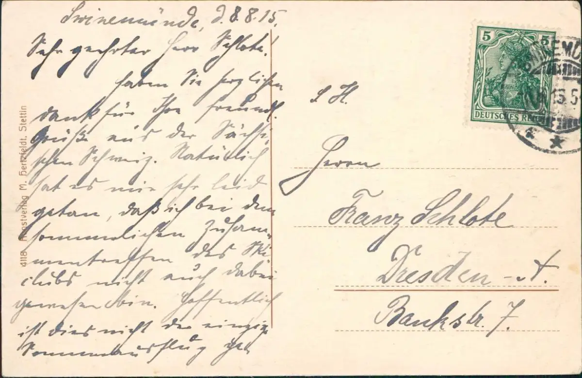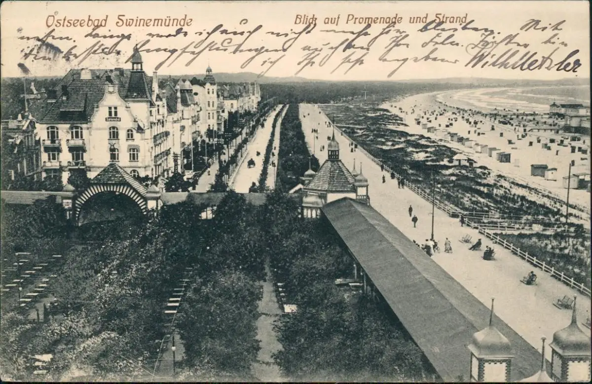 Postcard Swinemünde Świnoujście Blick auf Promenade und Strand 1915