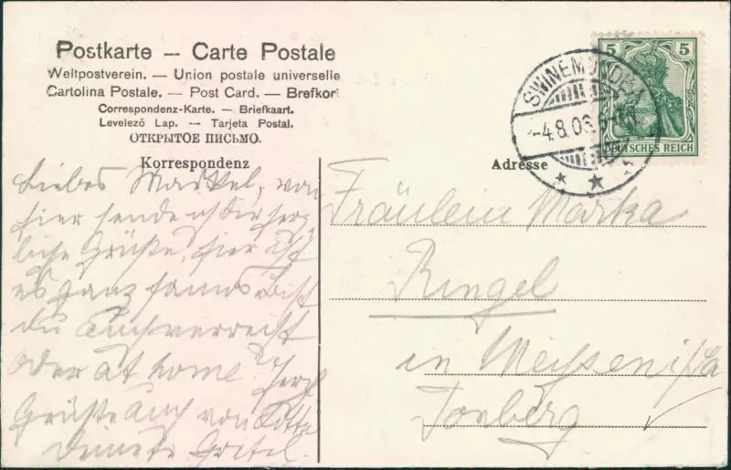 Postcard Swinemünde Świnoujście Segelboot - Landungssteg 1908
