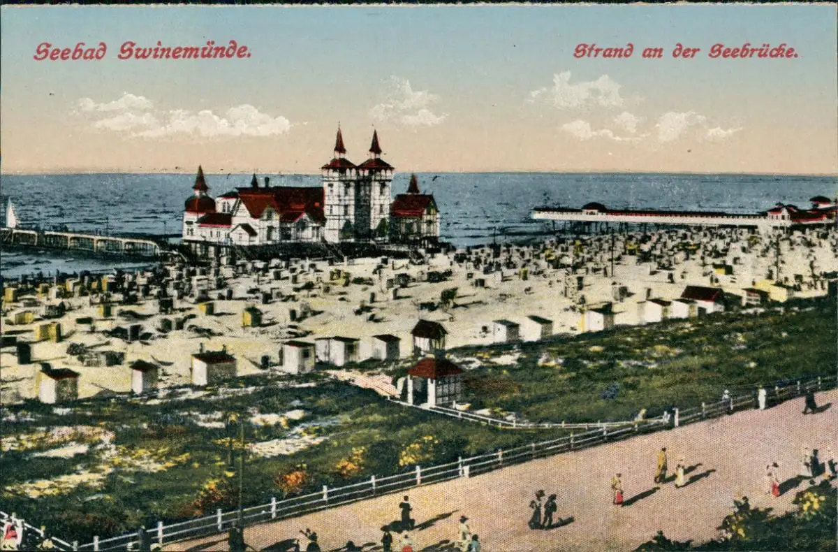 Postcard Swinemünde Świnoujście Strand, Seebrücke 1914