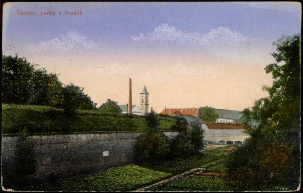 Postcard Theresienstadt Terezín Partie an der Stadt 1922
