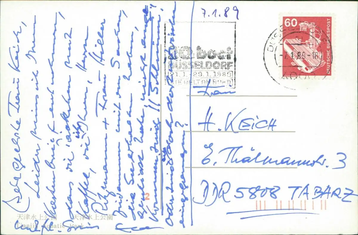 Postcard Tientsin 天津 (Tiānjīn) Aquatic Park - Luftbild 1989