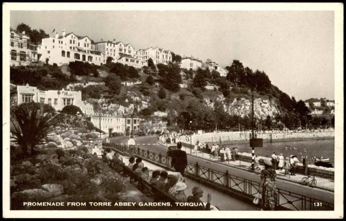 Postcard Torquay PROMENADE FROM TORRE ABBEY GARDENS 1950