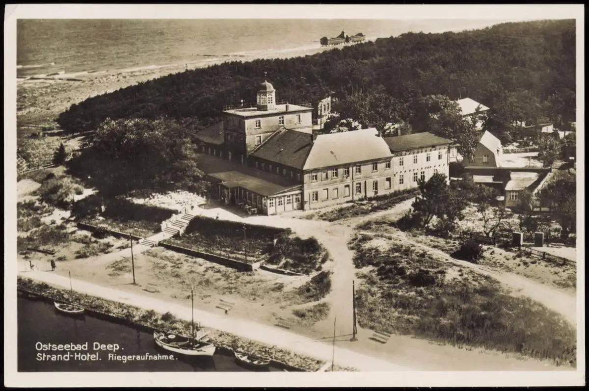 Postcard Treptower Deep / Regamünde Mrzeżyno Luftbild Strandhotel 1930