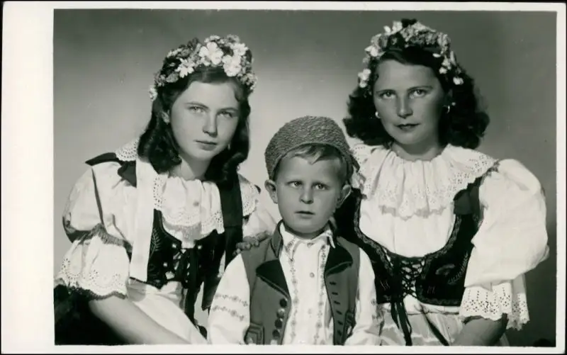 Postcard .Tschechien schöne Frauen in Traccht - Junge 1930
