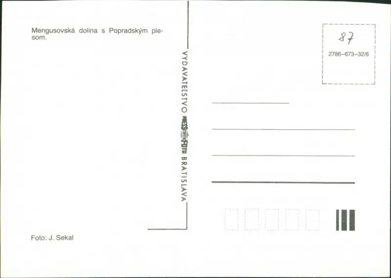 Postcard Vysoké Tatry Mengusovská dolina s Popradským plesom 1987