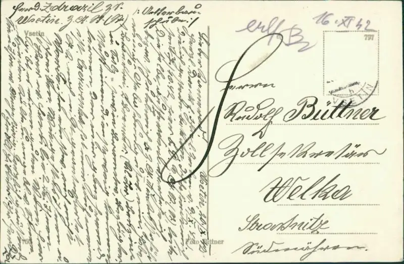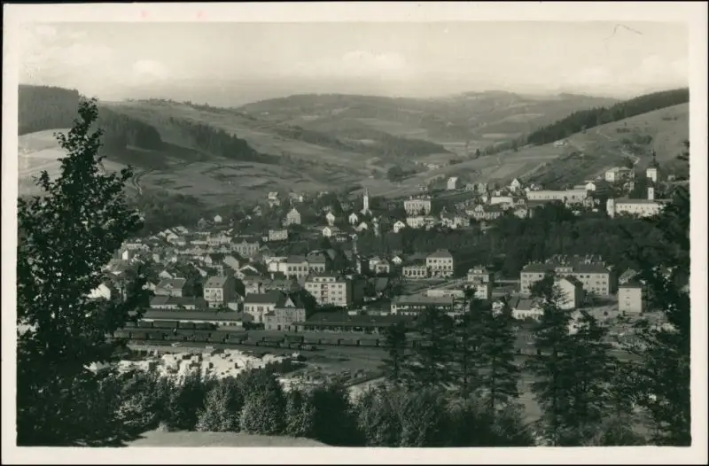 Postcard Wesetin Vsetín | Settein Blick auf Stadt und Bahnhof 1942