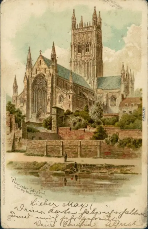 Postcard Worcester Worcester Cathedral from the River Severn 1903