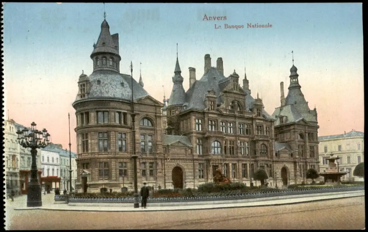 Postkaart Antwerpen Anvers La Banque Nationale 1914