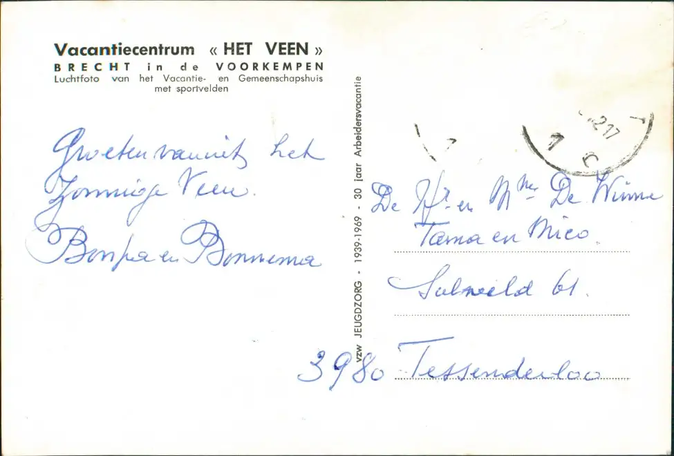 Postkaart Brecht (Belgien) Vacantiecentrum « HET VEEN » 1965